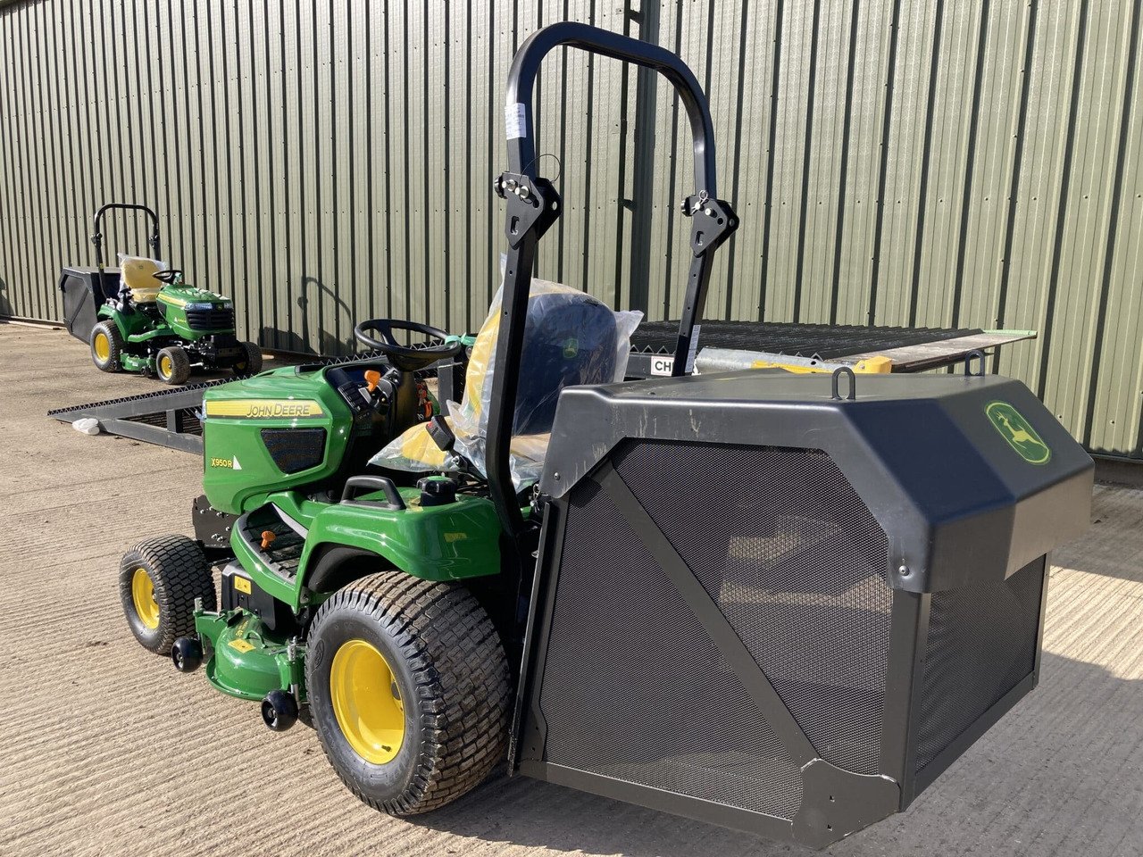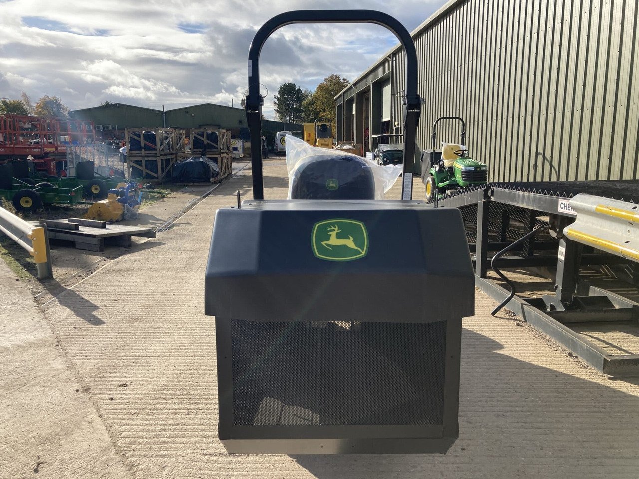 ride on rotary mower, 25.2hp 3 cylinder diesel engine, hydrostatic transmission, 2wd, hydraulic raise and lower to the 48″ rear discharge rotary cutting deck with shearbolt protection, cut height ranges from 1 in. to 4.5 in. (25 mm to 112 mm), hydraulic lift to the high tip grass collection hopper(650ltr). Emptying the collection hopper is possible at any height to suit individual application requirements. Long reach for easier emptying into the middle of trailers 80.3-in. (204-cm) high and 58.7-in. (149-cm) far out allowing full use of the trailer capacity.